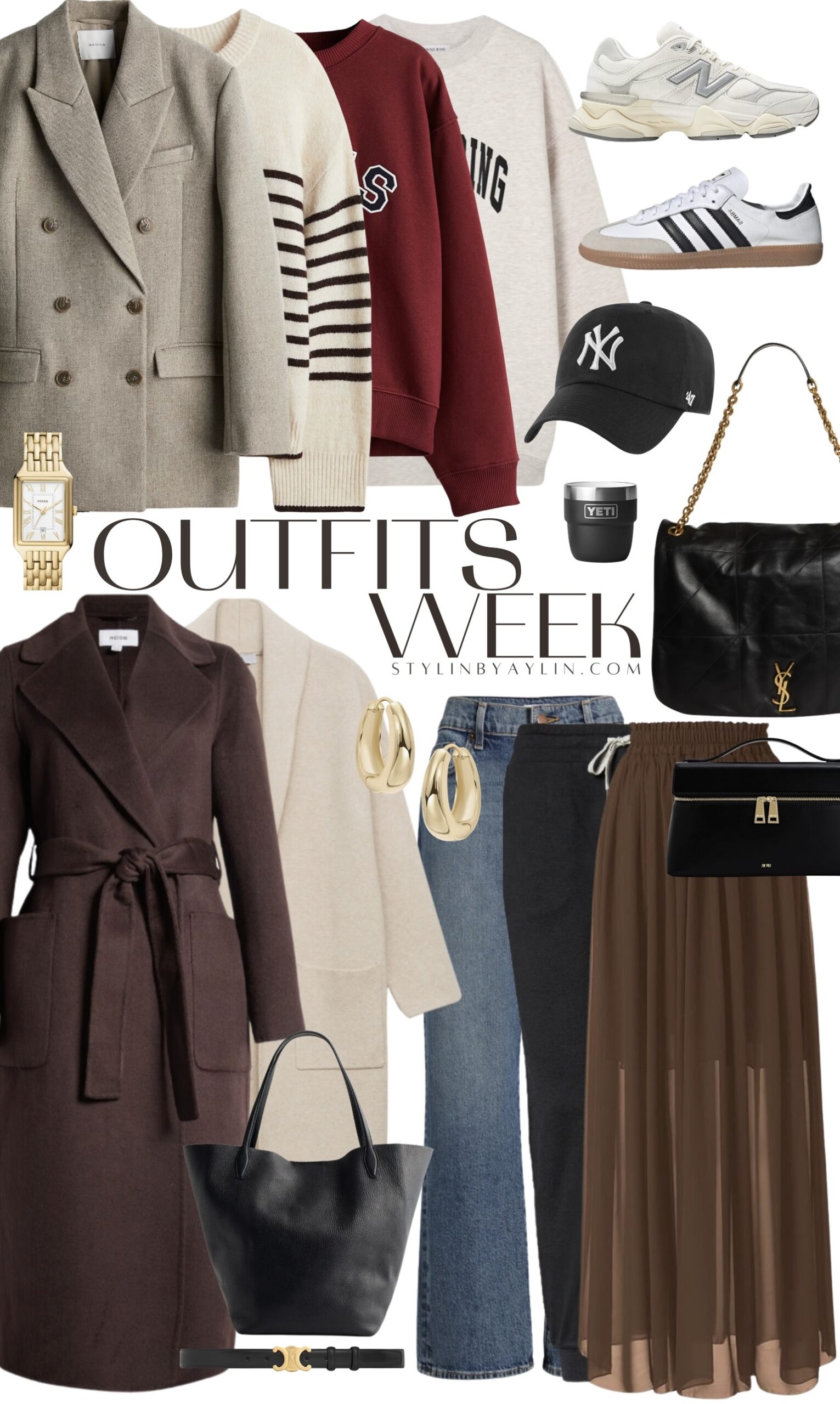This look is perfect for running errands or meeting a friend for coffee. I love this coat so much and am guilty of owning it in a few color options. This ivory is so pretty and versatile and great for winter. I styled it with a striped crop top and a some cozy joggers that feel buttery soft on the skin. I elevated this look with a designer handbag from YSL. Also, this gold ring is actually the Oura ring fitness & sleep tracker. I’m in love with mine. The best part is that it mixes in effortlessly with my other gold jewelry.